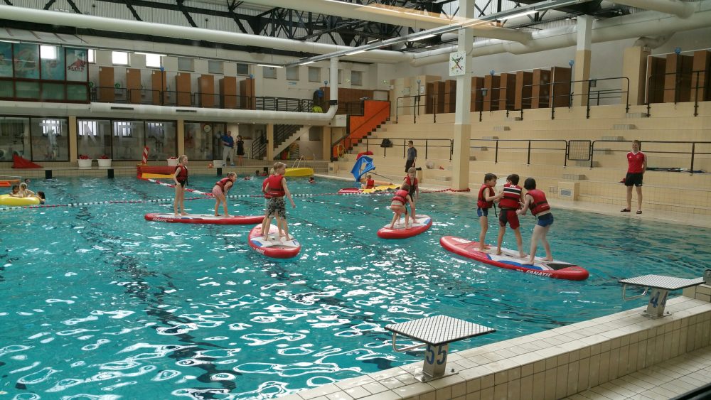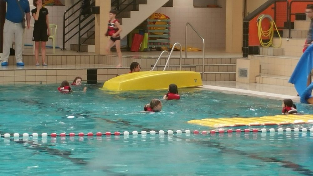 Het wekelijkse schoolzwemmen stond vandaag in het teken van ‘jezelf redden’. Wat doe je als je omslaat met je boot? Niet in paniek raken is het allerbelangrijkste. En goed kunnen zwemmen natuurlijk!