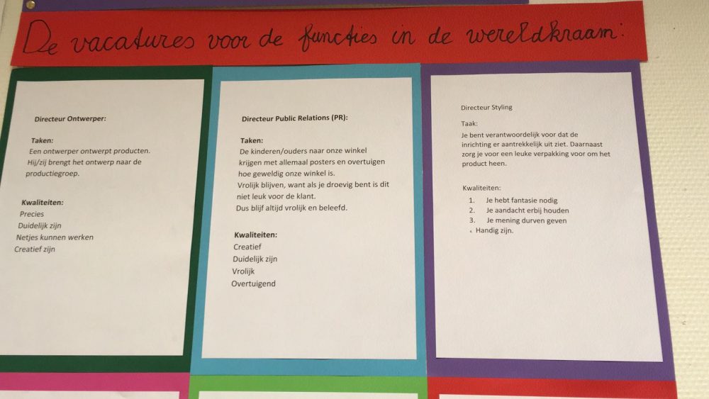 In groep 6/7b en in 7a zijn wij vandaag begonnen met het voeren van sollicitatiegesprekken voor een functie in de Wereldkraam.
