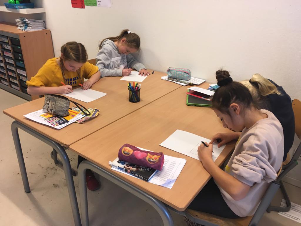 Groep 7A kreeg afgelopen dinsdagmiddag een workshop, van de moeder van Benthe (Renate), over creativiteit.